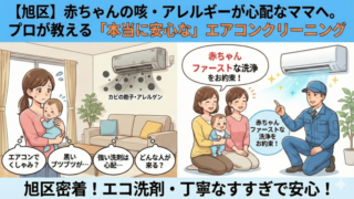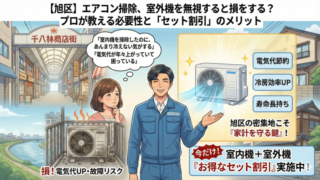 大阪市旭区でエアコンクリーニングなら、地域密着のプロにお任せください!カビやイヤなニオイを専用機材で徹底的に分解洗浄します。千林・森小路など旭区全域にスピーディーに対応。安心のエコ洗剤使用で、汚れの度合いによる追加料金は一切なしの明朗会計です。複数台割引も実施中!